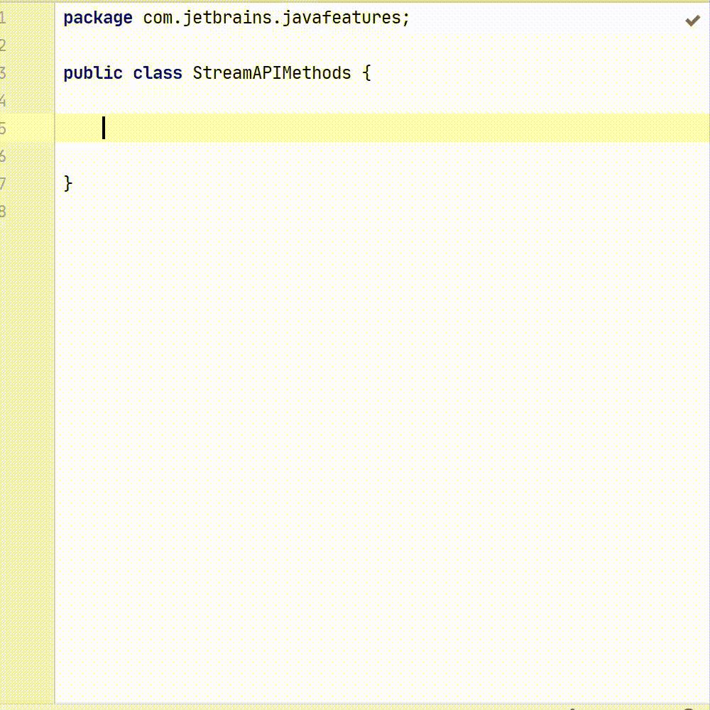 不再需要输入 stream() 之后再提升输入流操作,而是键入带有集合的流方法,IDEA 将自动插入 stream() 方法。