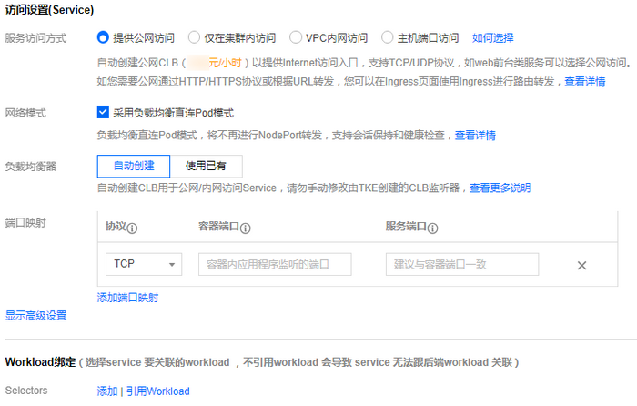 - 网络模式:勾选【采用负载均衡直连Pod模式】。