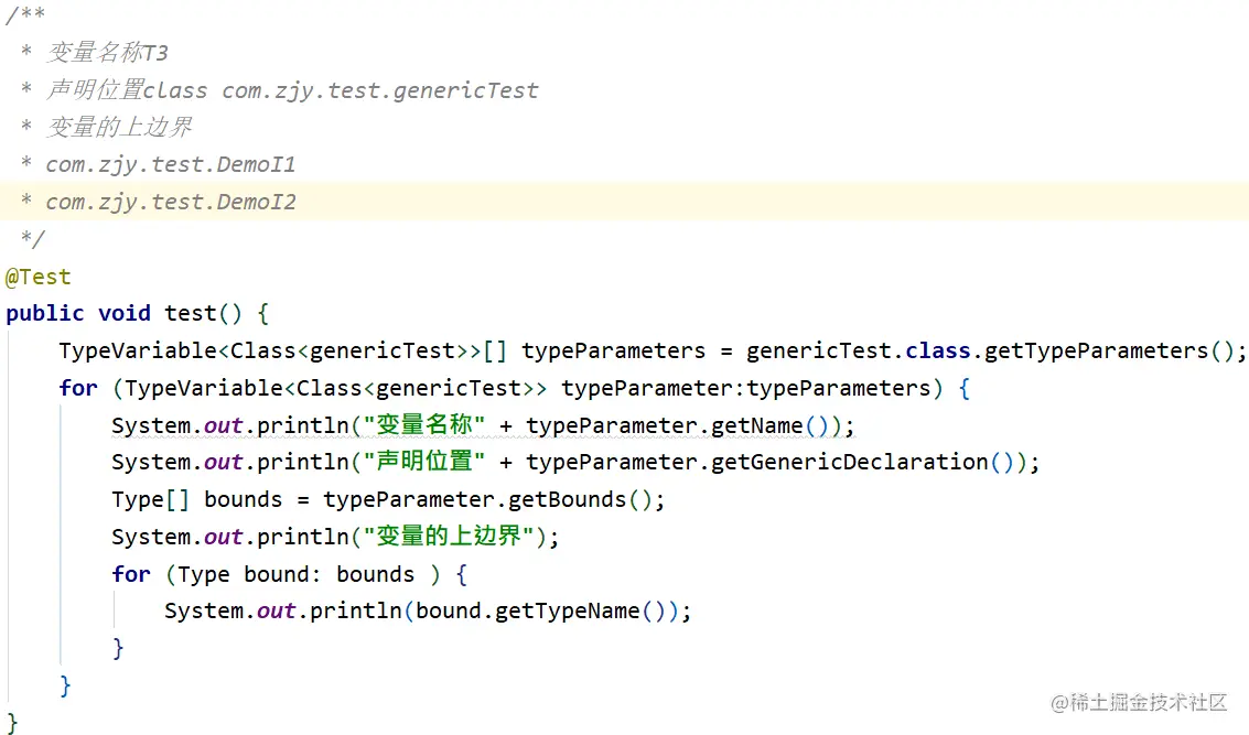 Type[] getBounds()获取泛型变量类型的上边界,如果未明确什么上边界默认为Object。