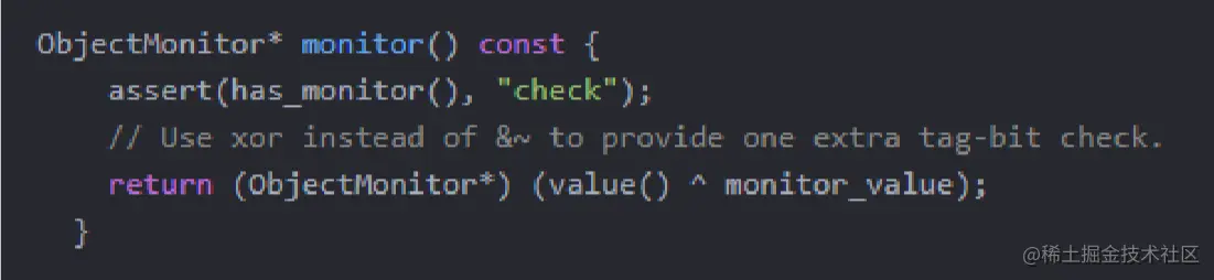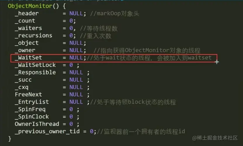 - 线程在获取锁的时候,实际上就是获得一个监视器对象 (monitor) ,monitor 可以认为是一个同步对象,所有的 Java 对象是天生携带 monitor。在 hotspot 源码的 markOop.hpp文件中,可以看到下面这段代码。