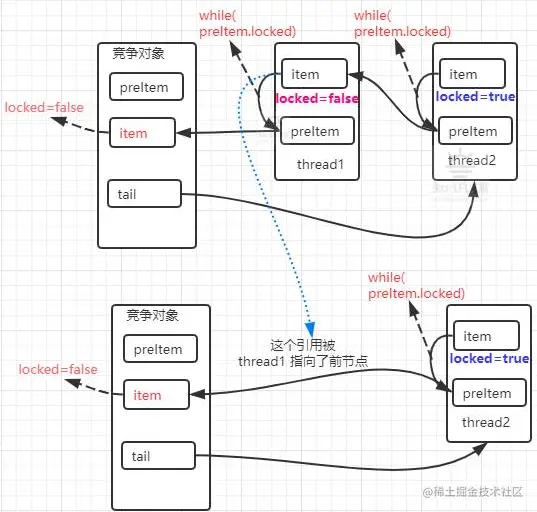 注意,锁在原地循环的时候,是会消耗cpu的,就相当于在执行一个啥也没有的for循环。