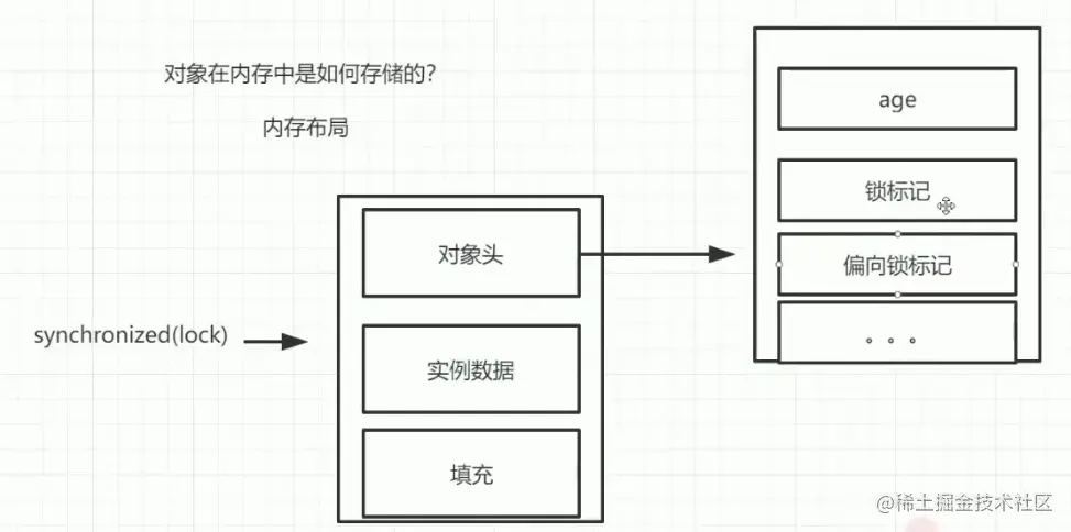 synchronized(lock)是基于 lock 这个对象的生命周期来控制锁粒度的,我们以对象在 JVM 内存中是如何存储作为切入点,去看看对象里面有什么特性能够实现锁
