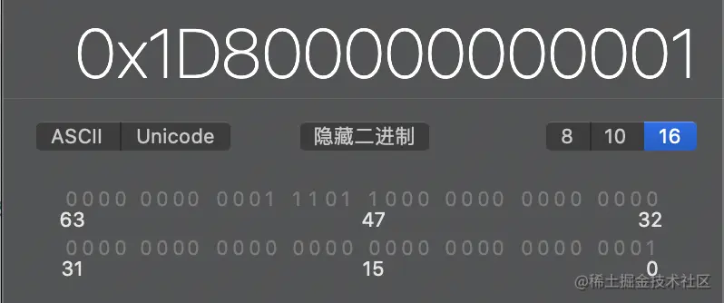 除了中间44位是1其他都是0,系统把isa.bits& ISA_MASK之后,得到的结果和我们上面第一种方式得到的结果相同