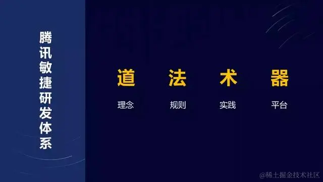 整套腾讯敏捷研发体系分为道、法、术、器四个方面。