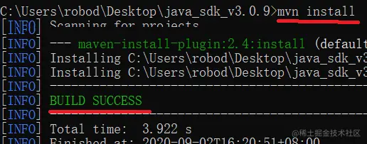 现在就可以将这个SDK添加到我们本地的Maven仓库里了,在解压后的sdk的根目录下执行mvn install命令。