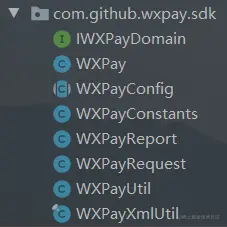 WXPay:和订单相关的方法都封装在这个类里面,比如下单,查询订单,取消订单等。里面有个方法fillRequestData(),每次执行下单等操作的时候都会去调用这个方法将WXPayConfig中的几个核心参数封装到请求参数的Map集合里。