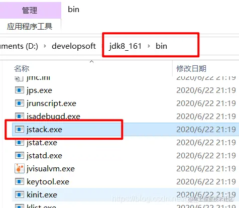 在jdk的bin 目录中,可以看到是有jstack.exe这个应用程序的,配置好了jdk的环境变量后,那么就可以直接用jstack来分析死锁了.