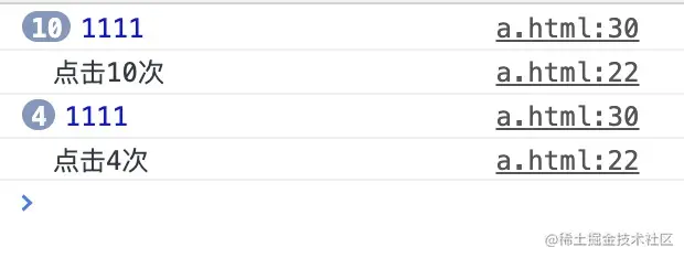 console.log( '点击'+ number + '次' )