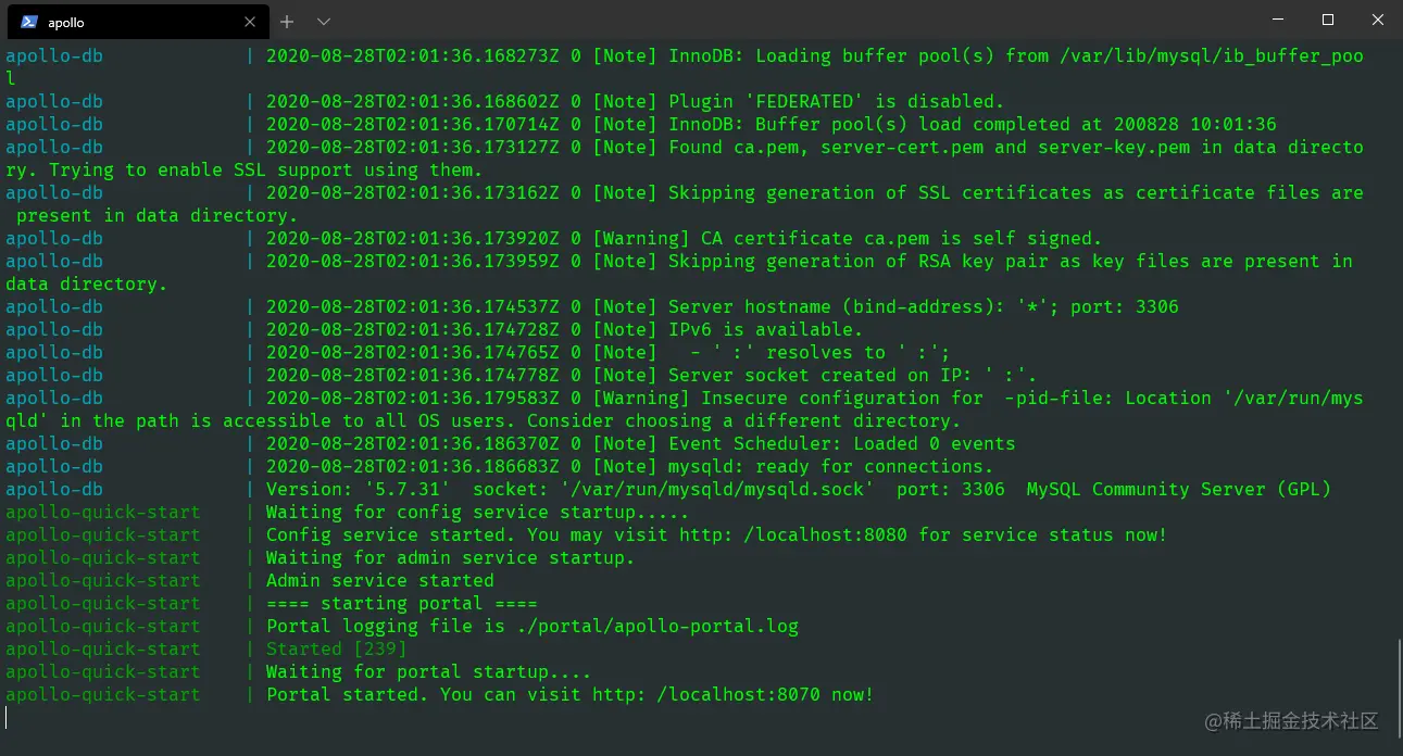 apollo-quick-start | Portal logging file is ./portal/apollo-portal.log
