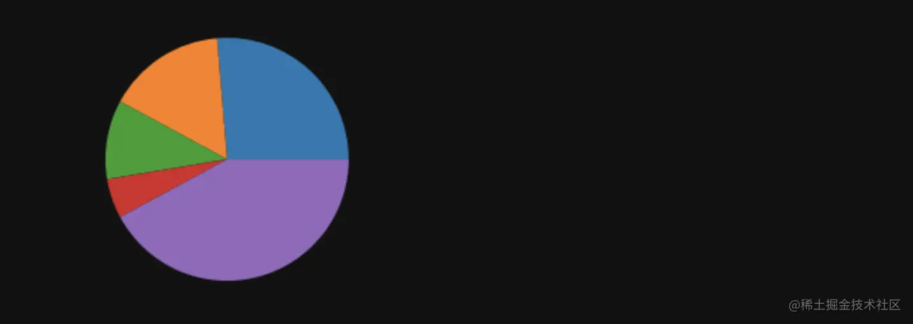和之前的结果相比饼状图稍稍不清晰一些,因为它虽然用不同颜色区分了不同的区域的,但是我们很难直观地看出来每一个区域分别代表什么。这个问题是可以解决的,我们可以通过传入一些参数和设定来让它展示更多的信息,让数据变得更加生动以及清晰。