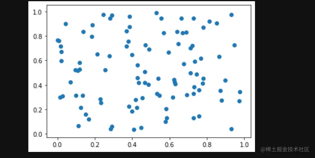 这里我们的x和y都是随机分布,所以得到的结果是散乱没有规律的点。