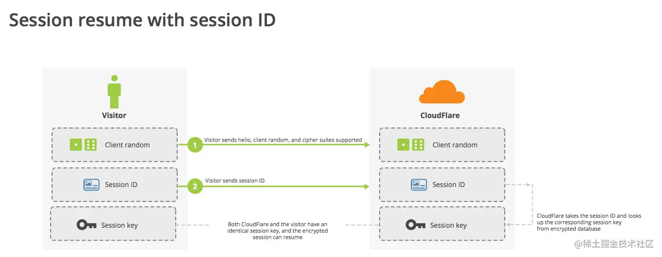 这时有两种方法可以恢复原来的session: 一种叫做session ID,另一种叫做session ticket。