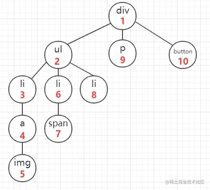 通俗的讲它是先遍历子节点(直至结束)再遍历兄弟节点;遍历结果如下
