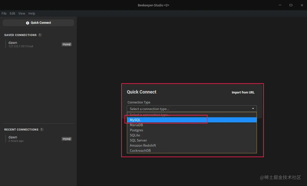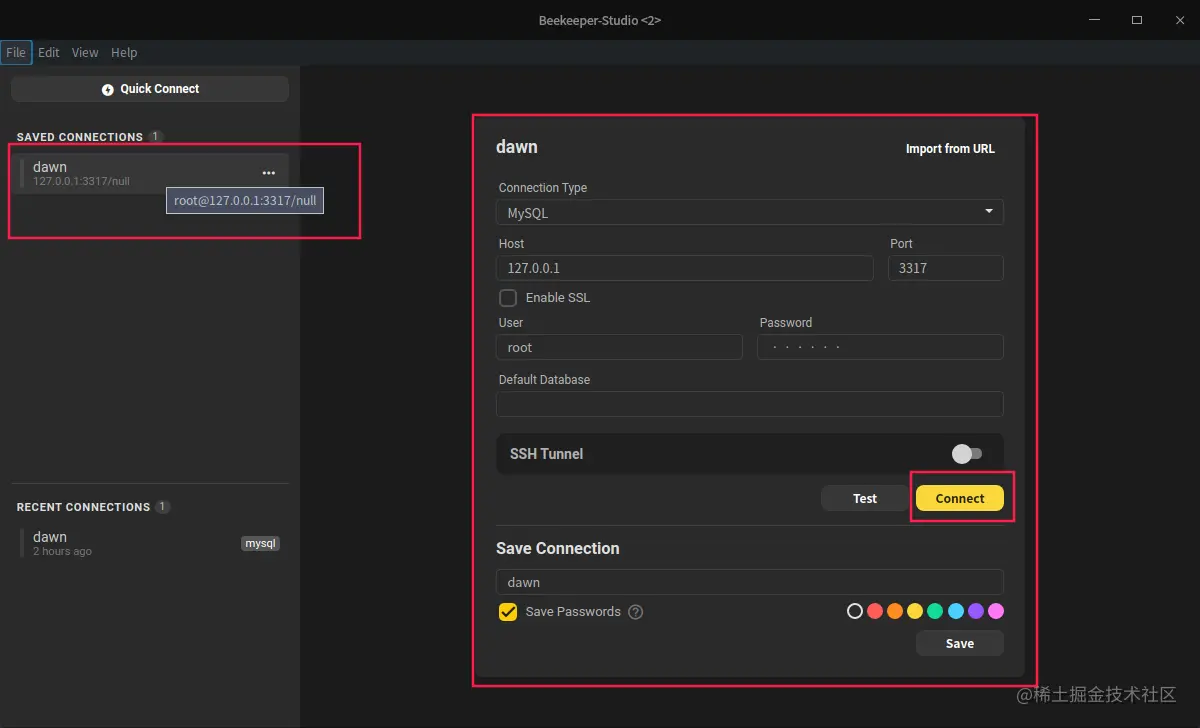 如果直接点connect会直接连接数据,下次还有再输入相关信息。