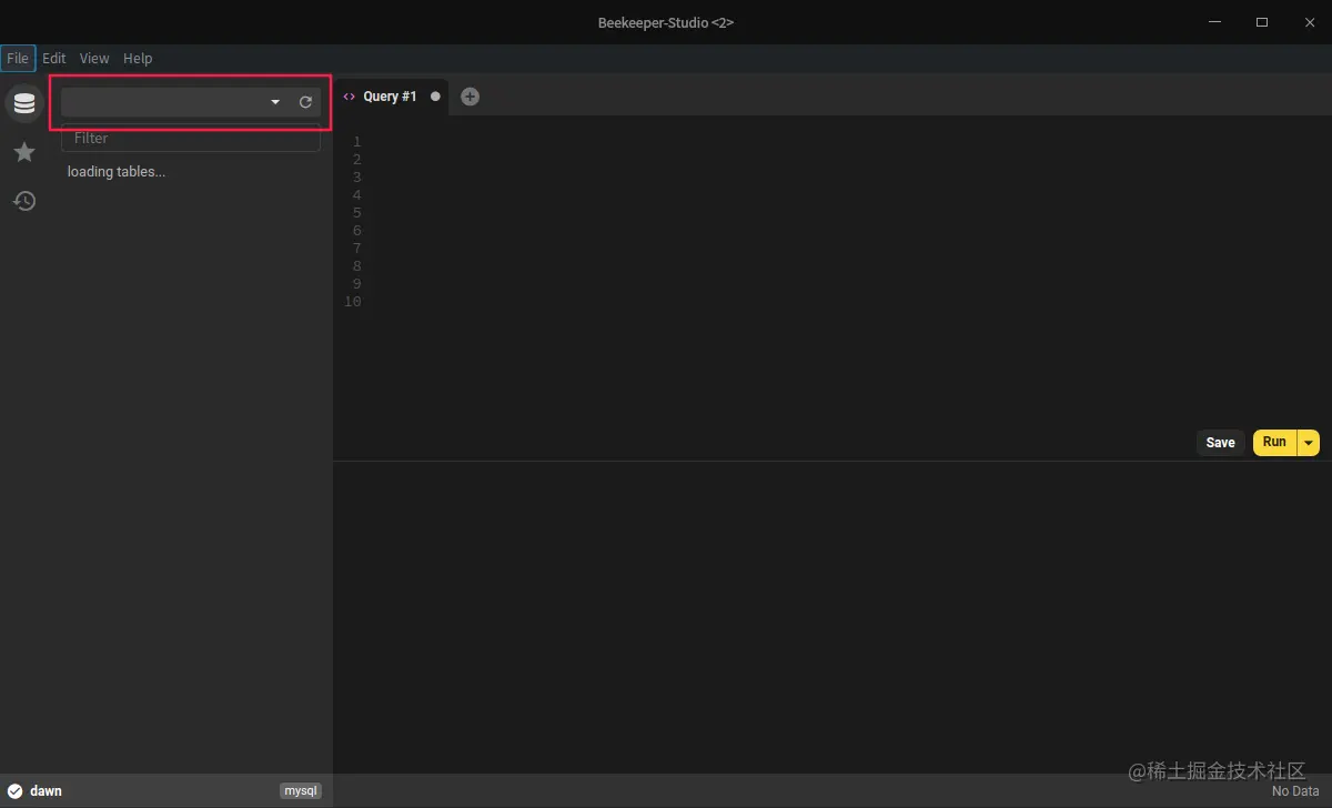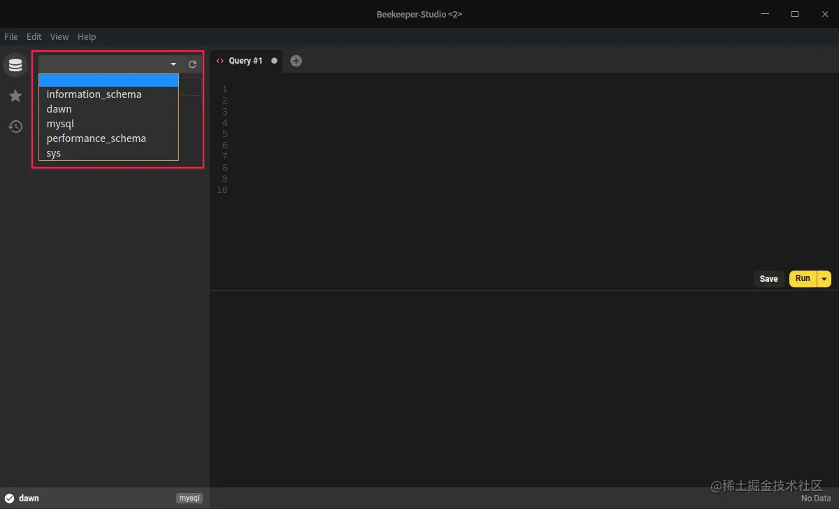 此时要点击上方的红框部分,选择某一数据库,进行操作。