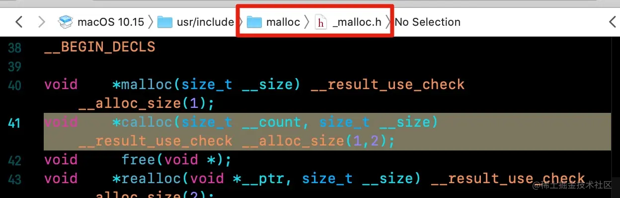 - 4、点击进入calloc的源码实现,发现是一个calloc的声明,源码就无法继续往下走了