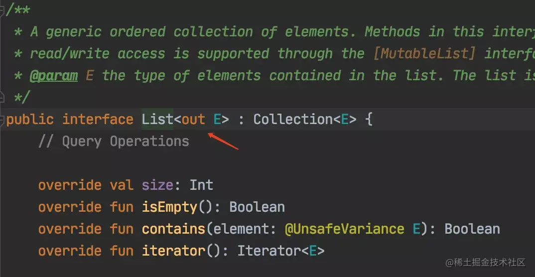 因为Kotlin中List是只读的,所以说肯定是安全的,所以官方在定义List接口的时候就直接定义成了协变的: