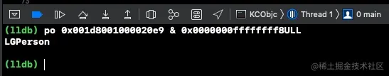 得到了一样的结果0x00000001000020e8,进一步说明isa指针的中间33位(x86中间为44位)存储的才是class的类名