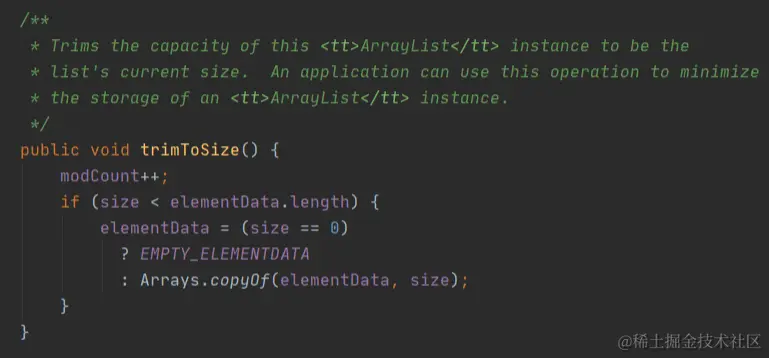 9、 如果想将element对象大小弄成跟size一样大,也就是释放多余空闲的数组,使用trimToSize方法