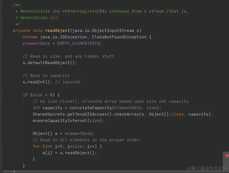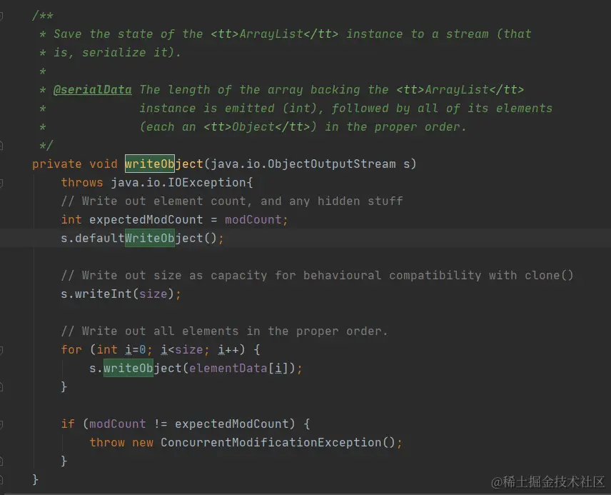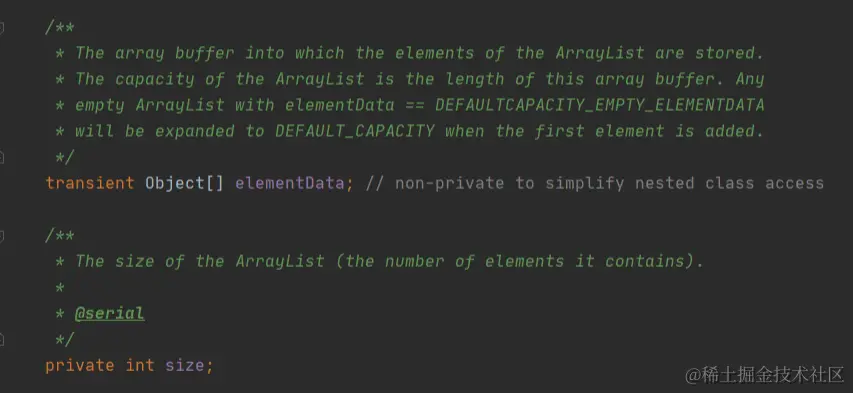 - ** 元素对象不支持序列化。elementData 是被transient关键字修饰的,不可被序列化的,它自己实现了writeObject()和readObject()方法**