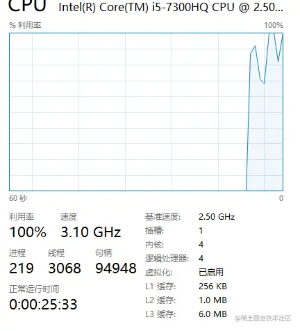 - 通过任务管理器可以看到 CPU 的核数和高速缓存空间。