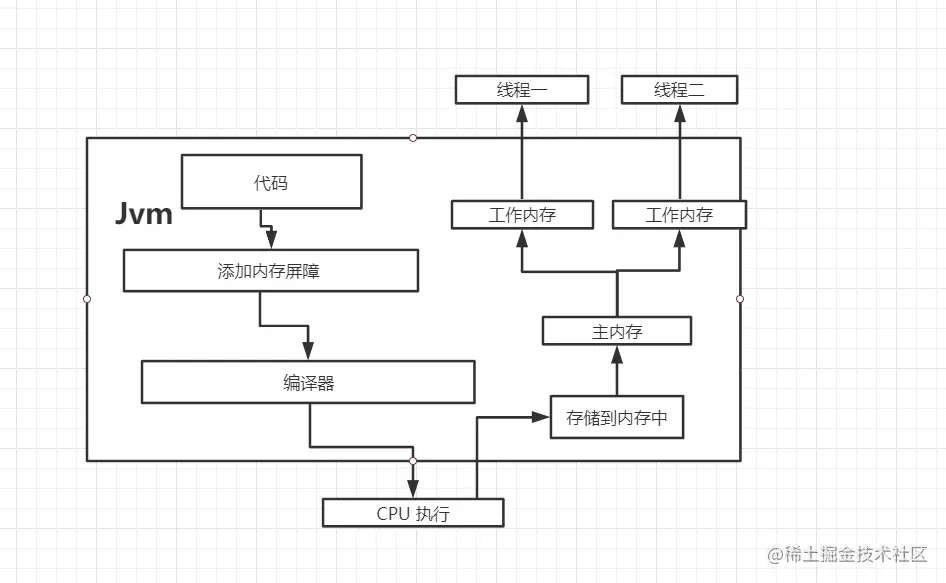 - 也就是说真正交给 CPU 执行的指令实际上是经过了添加内存屏障的指令,并且缓存都存在,但是在JVM中经过了一系列处理,对 CPU 的高速缓存的数据没有更新。