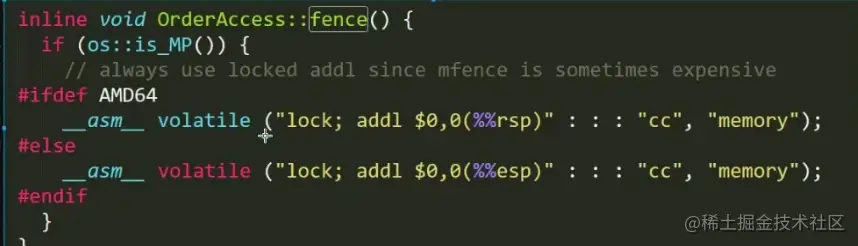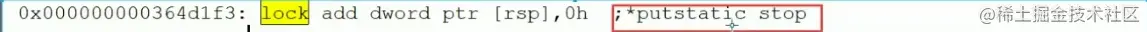 我们可以使用【hsdis】这个工具,来查看前面演示的这段代码的汇编指令。然后在输出的结果中,查找下lock指令,会发现,在修改带有volatile修饰的成员变量时,会多一个lock指令。lock 是一种控制指令,在多处理器环境下,lock 汇编指令可以 基于总线锁或者缓存锁的机制来达到可见性的一个效果。