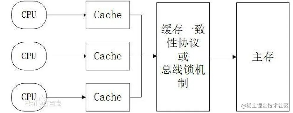 首先,有了高速缓存的存在以后,每个CPU的处理过程是,先将计算需要用到的数据缓存在CPU高速缓存中,在CPU进行计算时,直接从高速缓存中读取数据并且在计算完成之后写入到缓存中。在整个运算过程完成后,再把缓存中的数据同步到主内存。
