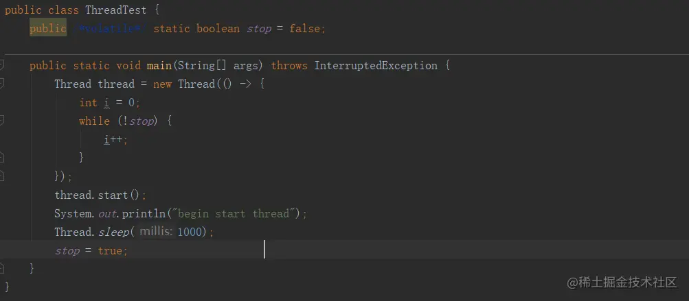 在单线程的环境下,如果向一个变量先写入一个值,然后在没有写干涉的情况下读取这个变量的值,那这个时候读取到的这个变量的值应该是之前写入的那个值。这本来是一个很正常的事情。但是在多线程环境下,读和写发生在不同的线程中的时候,可能会出现:读线程不能及时的读取到其他线程写入的最新的值。这就是所谓的可见性为了实现跨线程写入的内存可见性,必须使用到一些机制来实现。而volatile就是这样一种机制。
