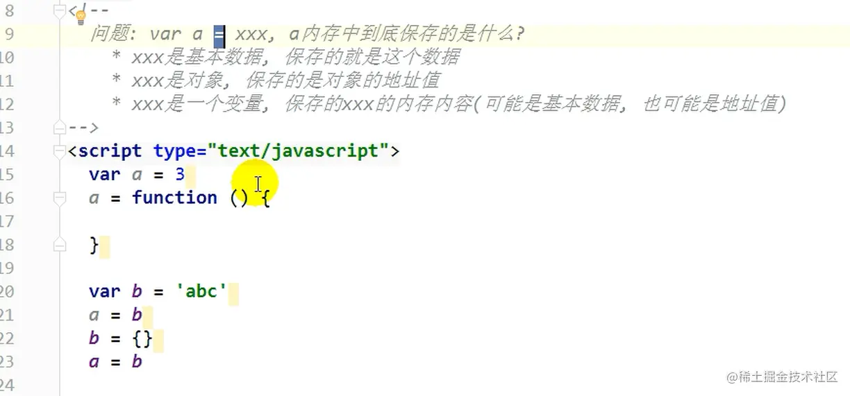 var timer = null //null 代表将要赋值 /把内存腾出来被垃圾回收器回收(在浏览器中)