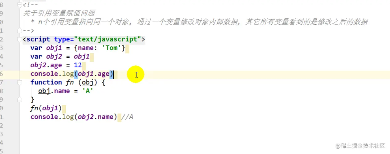 console.log(b.age, a.name, a.age)//12 "Bob" 13