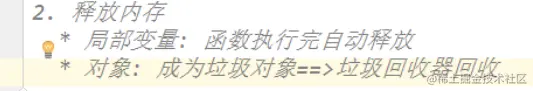 局部变量 (ps:不代表带上他后面的{}) 自动释放:函数执行完释放(立马干掉)