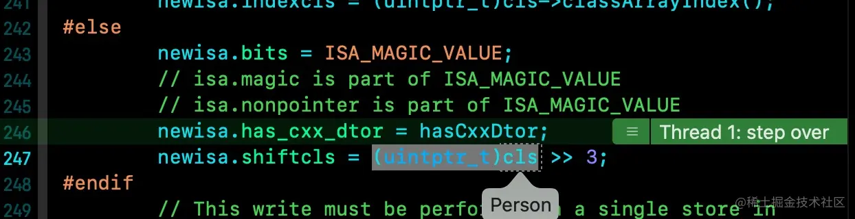 newisa.shiftcls = (uintptr_t)cls >> 3的上一行代码 -