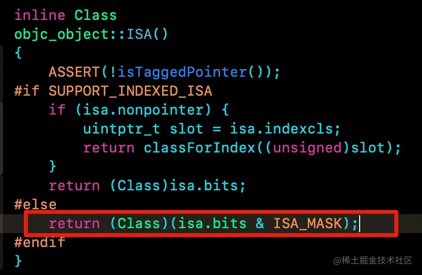 else 流程中返回了isa.bits & ISA_MASK的结果,与上述的验证一致,获得当前类的信息。