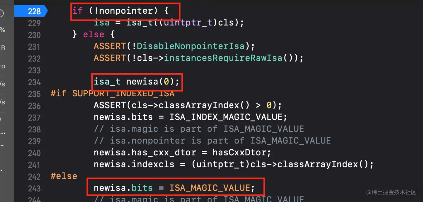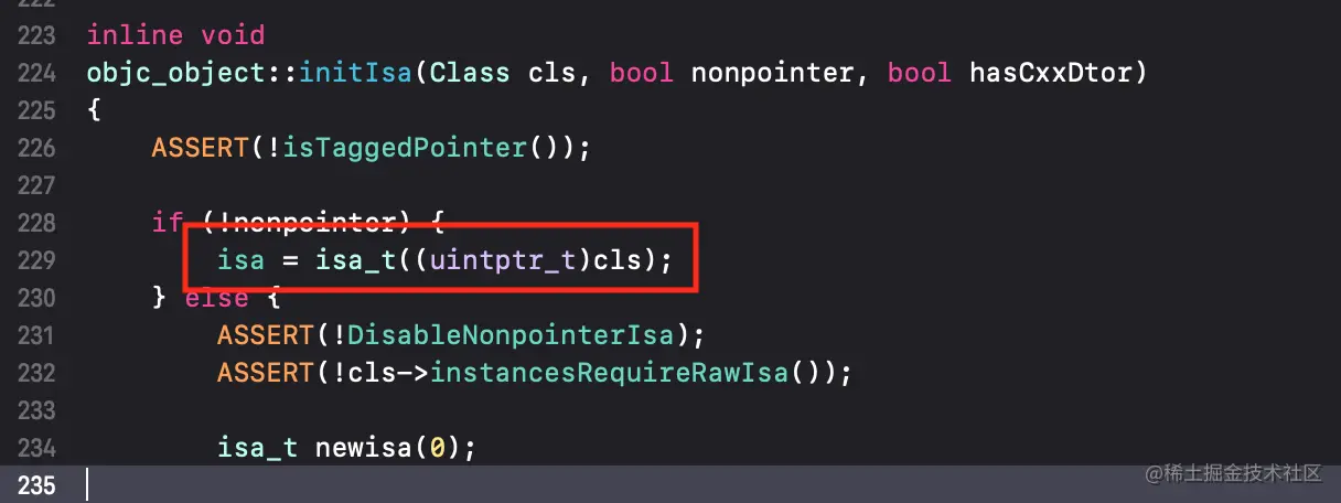 object_getClass函数源码进入object_getClass底层实现点击getIsa的方法,点击ISA(),进入源码,可以看到如果是indexed类型,执行if流程,反之 执行的是else流程 -