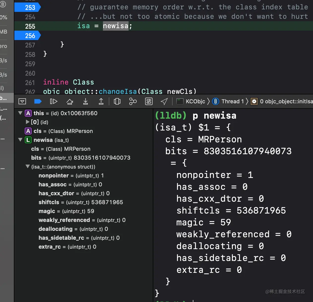 断点**LLDB**打印执行**p newisa**