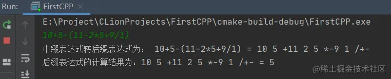 cout << "中缀表达式转后缀表达式为: " << infixString << " = " << suffixString << endl;