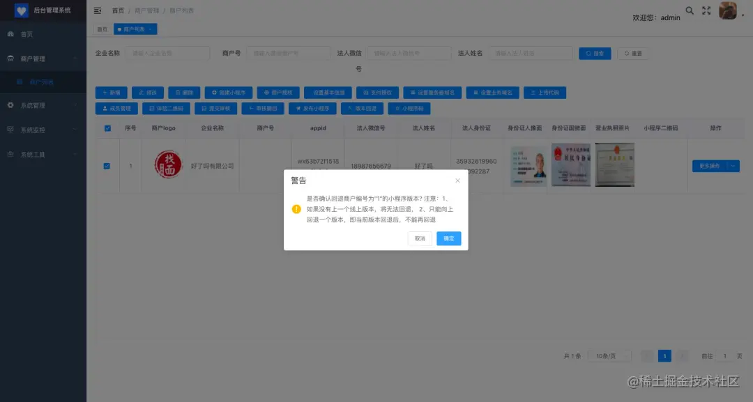 只能向上回退一个版本,即当前版本回退后,不能再调用版本回退接口。