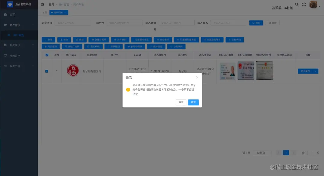 注意: 单个帐号每天审核撤回次数最多不超过 1 次,一个月不超过 10 次。