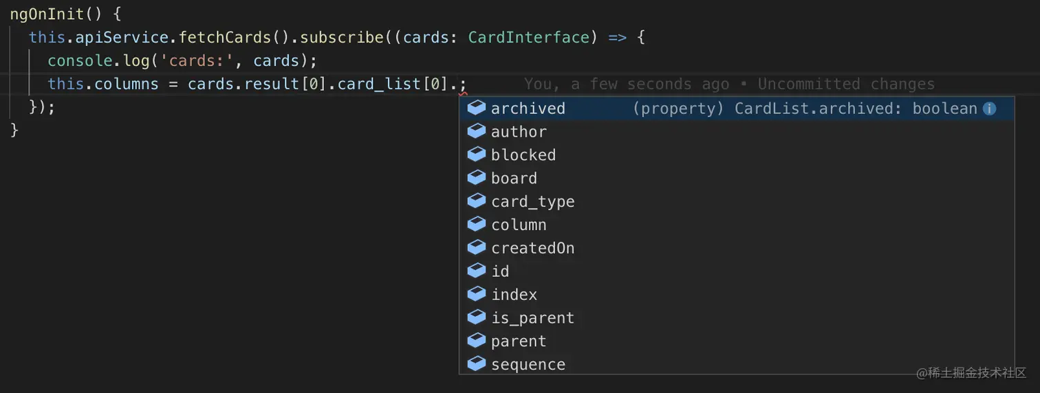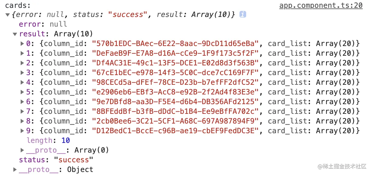 然后注入Angular的HttpClient服务,就可以向Mock服务的/cards接口发起请求: