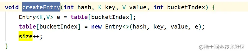 table[bucketIndex] = new Entry<>(hash, key, value, e); 新建entry,next指向当前节点