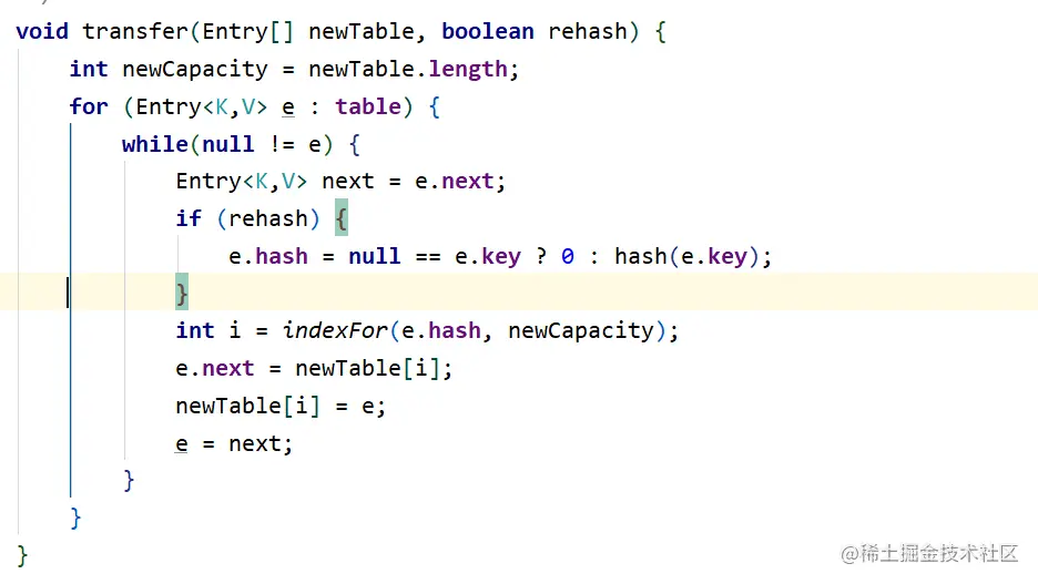 void transfer(Entry[] newTable, boolean rehash)