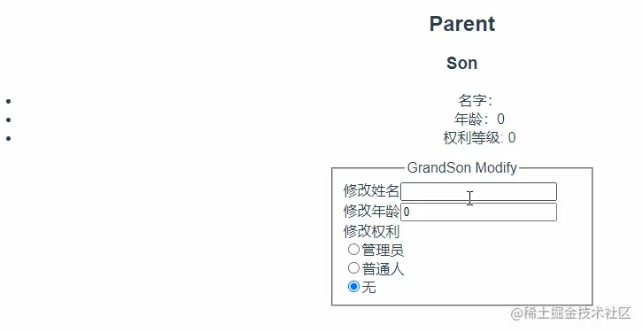 - provide中可以通过传入响应式参数,当深层次组件更新该元素后使上层相关视图也一起变化