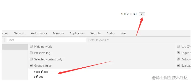 此时页面点击按钮以action触发commit('add'),会发现很神奇的事情