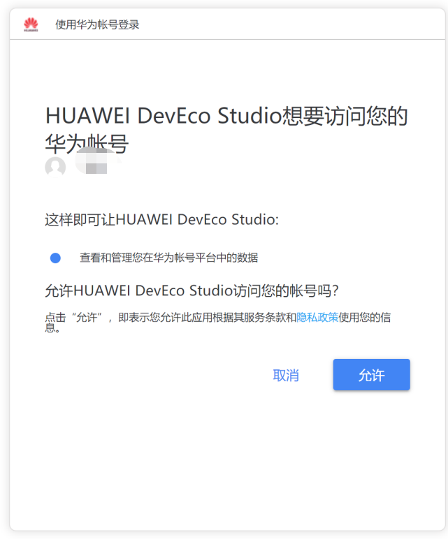 使用自己的华为账号登录(此处注意有坑,如果默认使用Chrome可能授权会失败,使用Windows自带的浏览器进行登录)