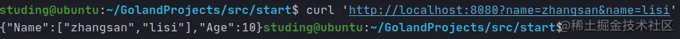 user := Student{Name: []string{"zhangsan", "lisi"}, Age: 10}