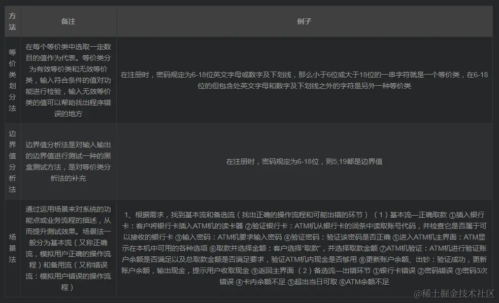 此外还有因果图法、错误推测法、判定表驱动法等,这里暂时不一一介绍,后续我会专门整理一篇博文介绍