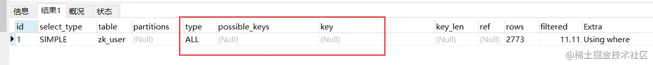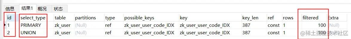 - 使用 explain extended 时会出现这个列,5.7 之后的版本默认就有这个字段,不需要使用 explain extended 了。