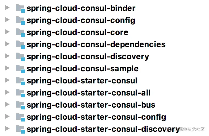 - 所有模块都依赖spring-cloud-consul-core模块