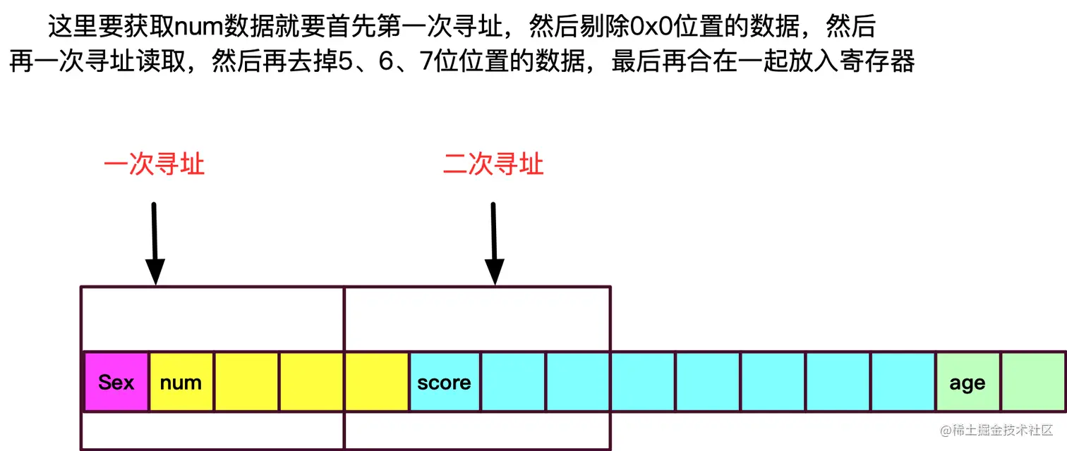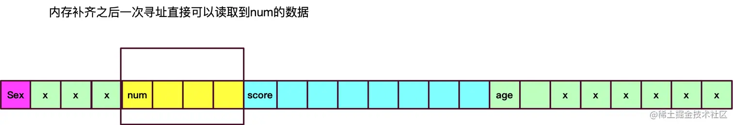 - 不难看出没对齐之前cpu去一个数据又要剔除某一段数据又要合并数据的,需要做很多工作,而合并之后一次就读取到了想要的数据,所以内存对齐可以很大程度上提成CPU访问速度(用空间换时间)